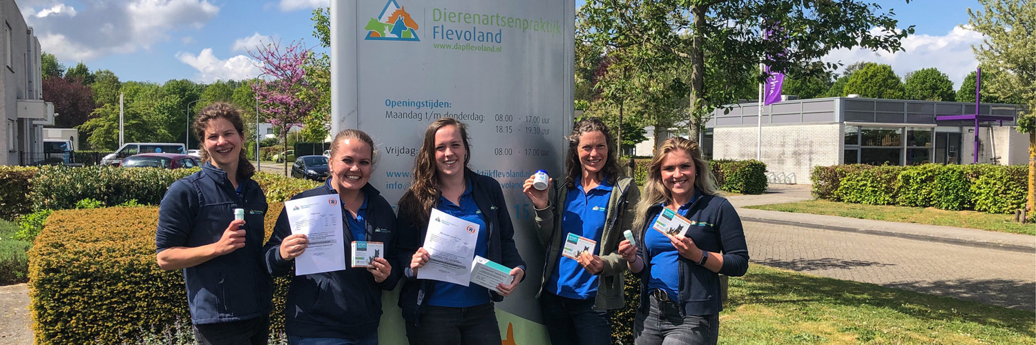 Dierenartspraktijk Flevoland is een gemengde praktijk in Zeewolde. De vooruitstrevende praktijk biedt in hun Huisdieren Zorgplan honden- en katteneigenaren de keuze: de standaard vaccinatie of titeren met VacciCheck. Paraveterinair Marilyn legt uit: “We gaan voor duurzaam in onze preventie, behandelingen en producten. We vinden het fijn als klanten en hun dieren zich veilig en vertrouwd bij ons voelen”